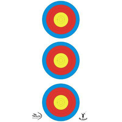 Alvos de papel para indoor 3 spots fabricado pela Mr.Archer, ainda não aprovado pela World Archery.